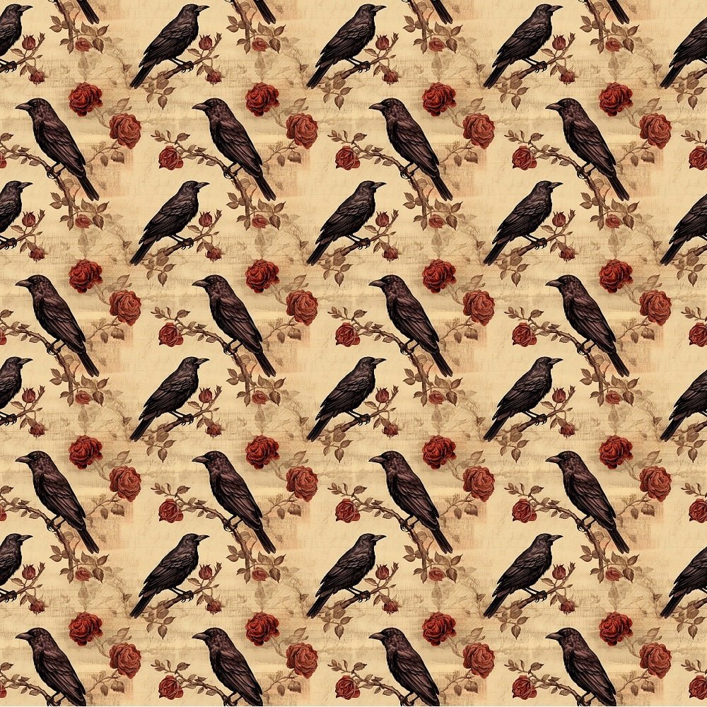 Edgar Allen Poe Crows & Roses #3 Fabric Details