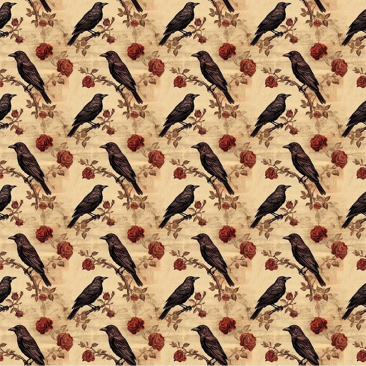 Edgar Allen Poe Crows & Roses #3 Fabric