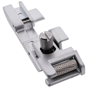 Confidently serge elastic by letting this foot take care of all the work. This foot provides even tension every time to prevent pulling and tugging on the needle. The adjustable guide and tension dial allow you to serge elastic with a finished uniform stretch.