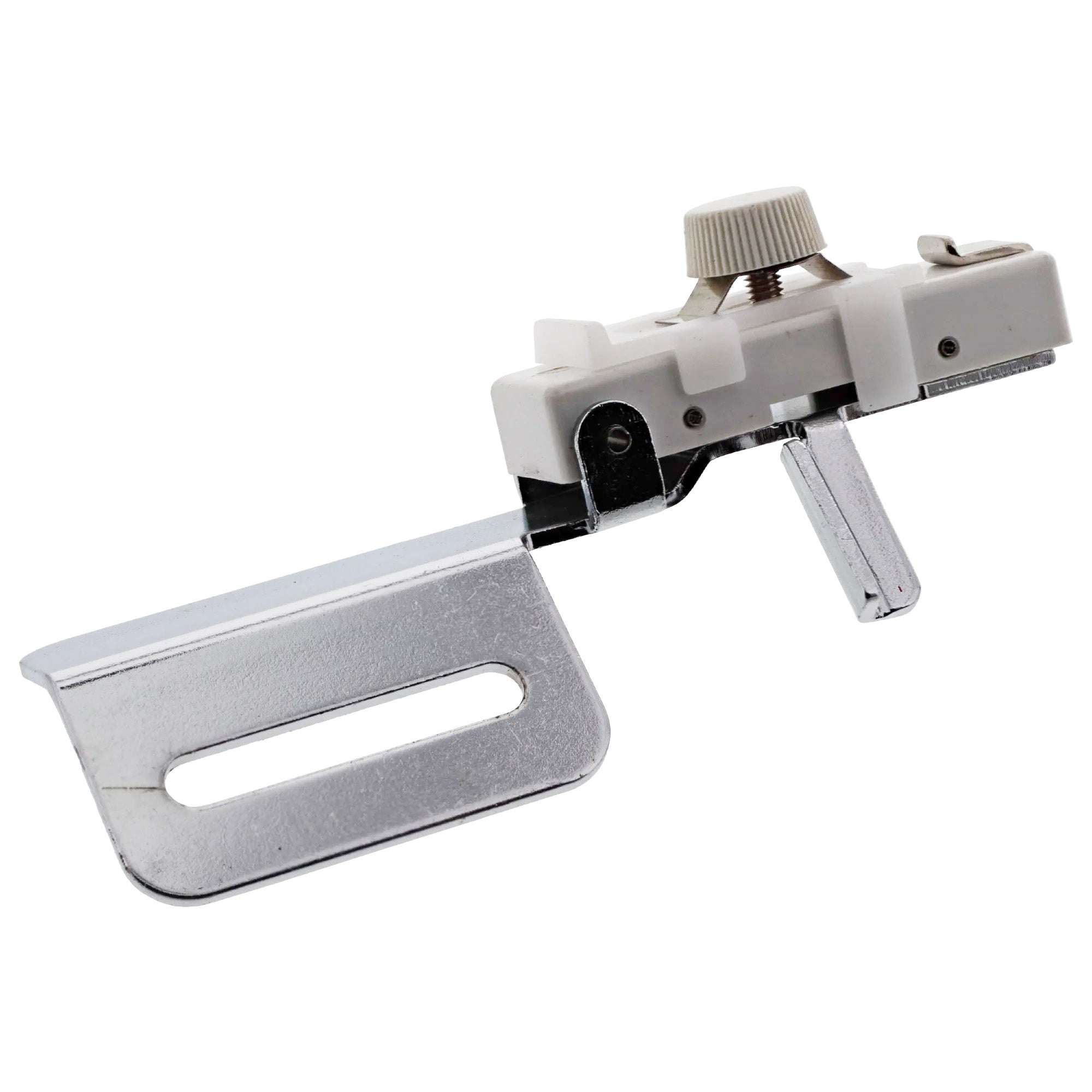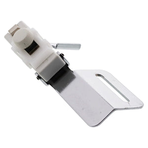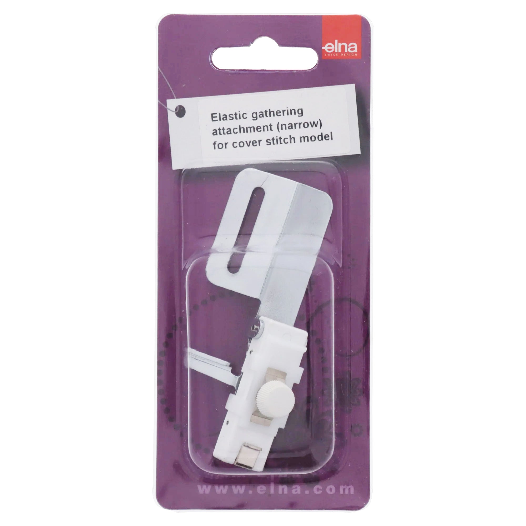 The Elastic Gathering Attachment evenly stretches elastic before sewing it with your overlock. It is a very simple method for attaching elastic from 3.5 mm to 8 mm wide.
