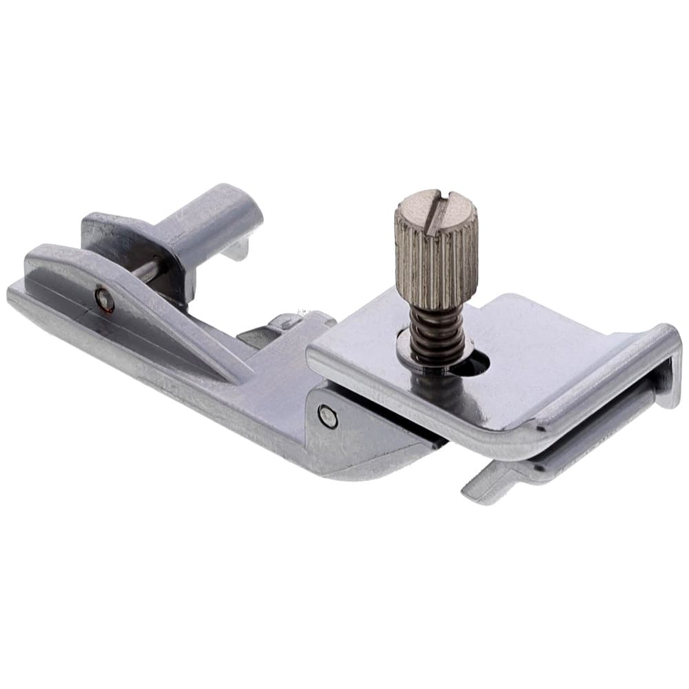 This foot stretches and guides elastic as it is sewn in place. Use it for lingerie, action wear, and other elastic insertion techniques.