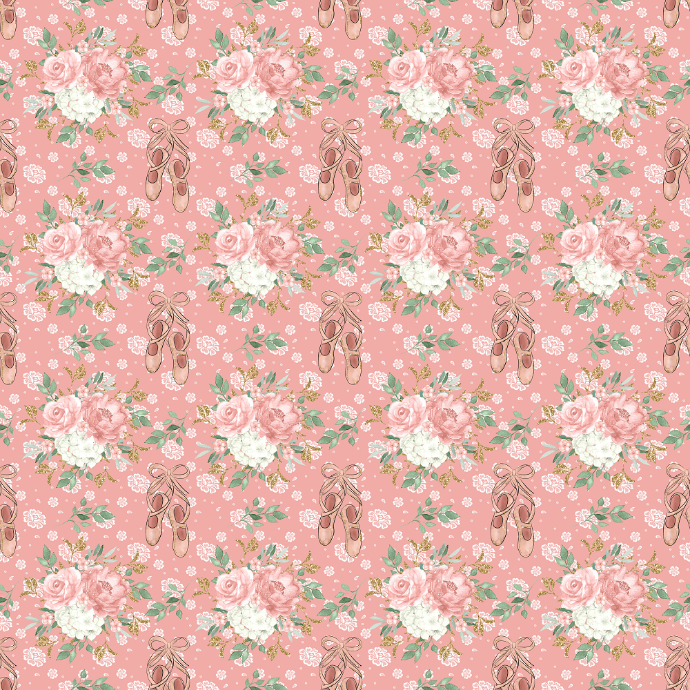 Elegant Ballerina Point Shoes and Floral Bouquets Fabric - Pink