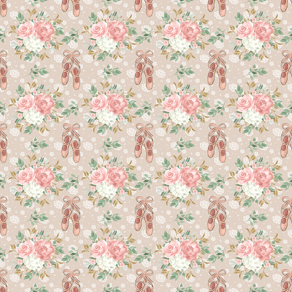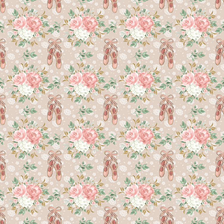 The Tan Elegant Ballerina Point Shoes and Floral Bouquets Fabric is part of the Beautiful Ballerina Fabric Collection printed by Sewing Parts Online. This fabric is digitally printed on 100% cotton.