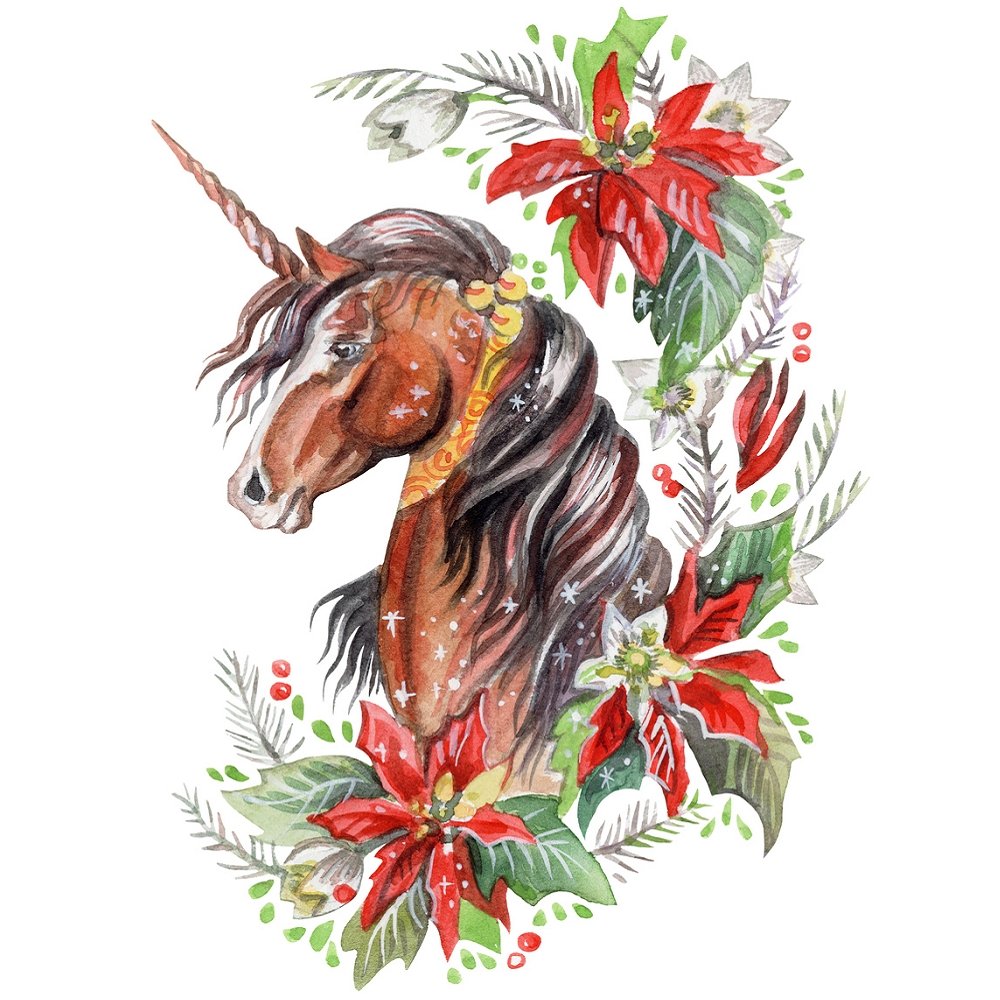 The Elegant Christmas Unicorn Fabric Panel is part of the Watercolor Christmas Fabric Collection printed by Sewing Parts Online. Digitally Printed on 100% cotton. This panel is available in 6 different sizes: