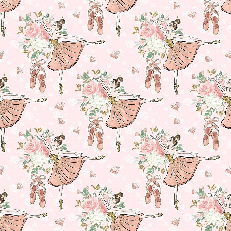 The Pink Elegant Dancing Ballerina on Floral Fabric is part of the Beautiful Ballerina Fabric Collection printed by Sewing Parts Online. This fabric is digitally printed on 100% cotton.