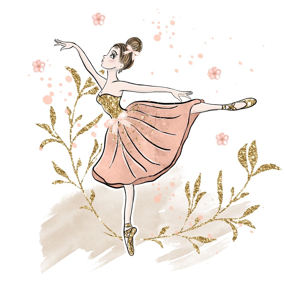 Elegant Watercolor Ballerina with Gold Fabric Panel Details