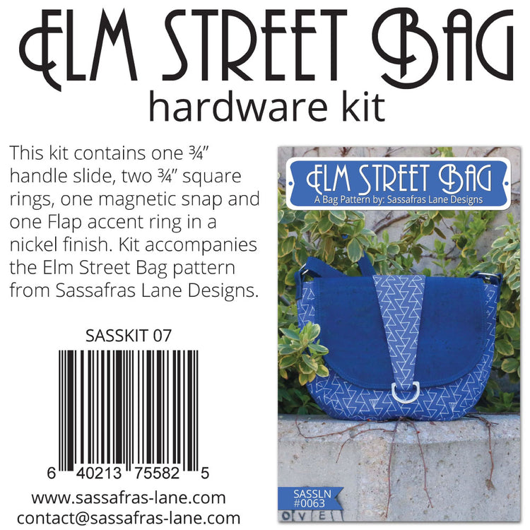 The Elm Street Bag Hardware Kit includes everything you need to complete the Elm Street Bag Pattern.
