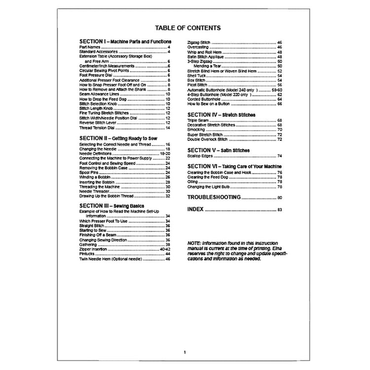 Elna eXplore 240 Sewing Machine Instruction Manual (Model 240) - 90 Pages. Lost your sewing machine's manual? We've got you covered! This instruction manual is the ultimate guide to unlock the full potential of your Elna eXplore 240. No more confusion or frustration—just clear, concise instructions right at your fingertips. What's inside? Everything you need to know from setting up to mastering your sewing machine and all its features.