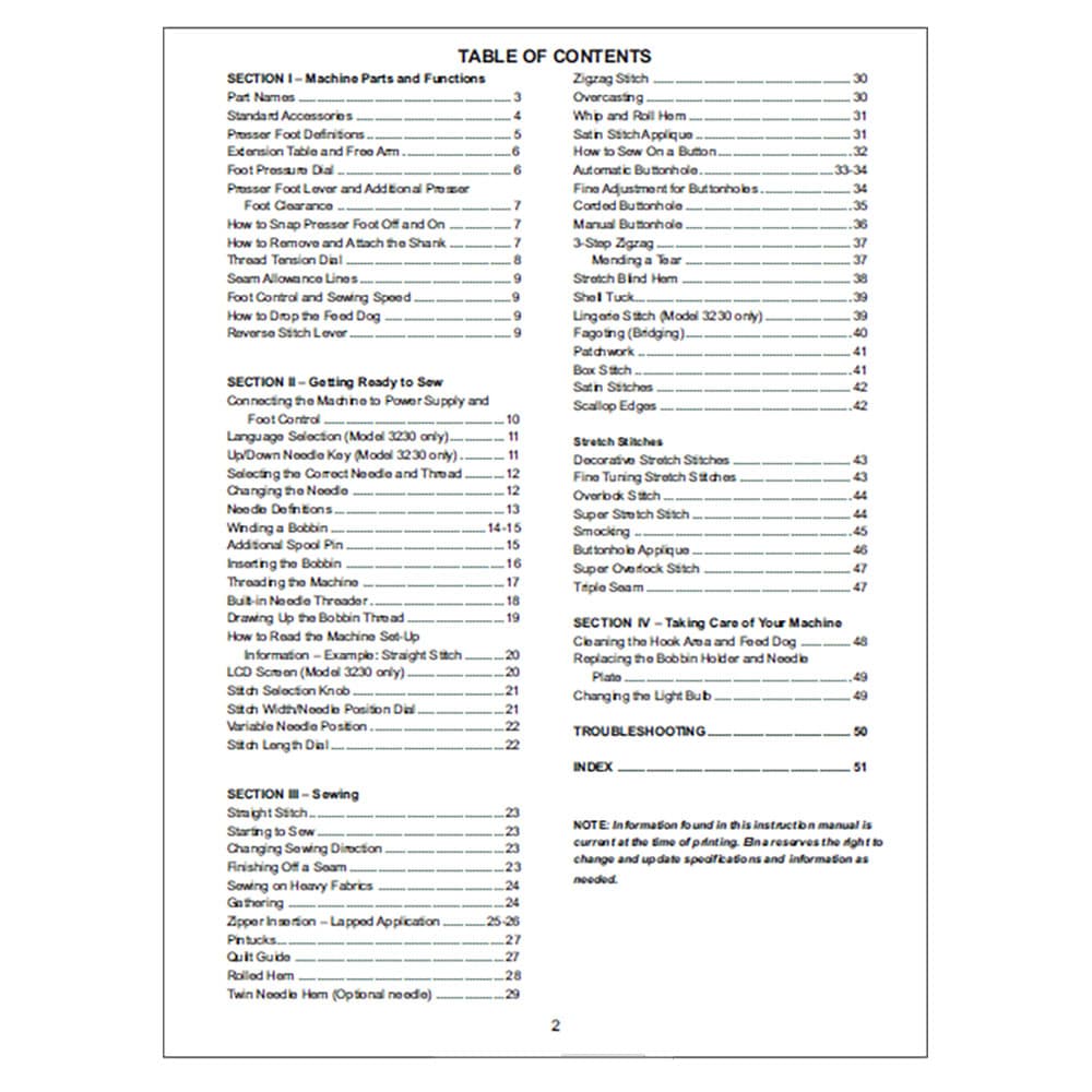 Elna 3210 Sewing Machine Instruction Manual (Model 3210/3230) - 56 Pages. Lost your sewing machine's manual? We've got you covered! This instruction manual is the ultimate guide to unlock the full potential of your Elna 3210. No more confusion or frustration—just clear, concise instructions right at your fingertips. What's inside? Everything you need to know from setting up to mastering your sewing machine and all its features.
