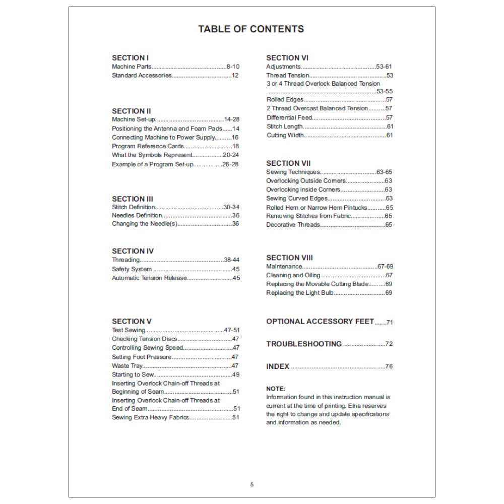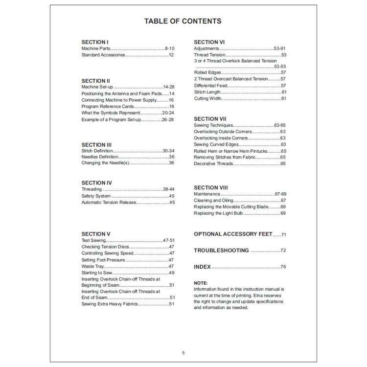 Elna 654 Instruction Manual Details