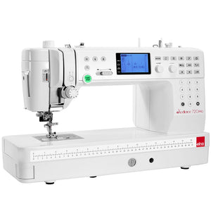Elna's 720Pro eXcellence Sewing and Quilting Machine offers the ultimate quilting experience. Inspired by industrial-type machines, this model is characterized by a flat-bed design, superior features, remarkable endurance, and an array of time-saving functions. The 720Pro sews upwards of 1200 stitches per minute and includes 200 built-in stitches with nine one-step buttonholes. The 10" all-metal seamless flatbed provides the perfect workspace for projects large and small! This luxury machine includes three needle plates, 91 needle positions, an extension table, LED lights, snap-on presser feet, retractable feed dogs, three alphabets, and so much more. To make navigating your machine easier, Elna uses convenient one-touch buttons and an easy-to-read LCD screen that displays presser foot recommendations, stitch selection, stitch length/width, thread tension, and more. The Elna eXcellence 720PRO offers the perfect combination of power, performance, and durability to meet your requirements.