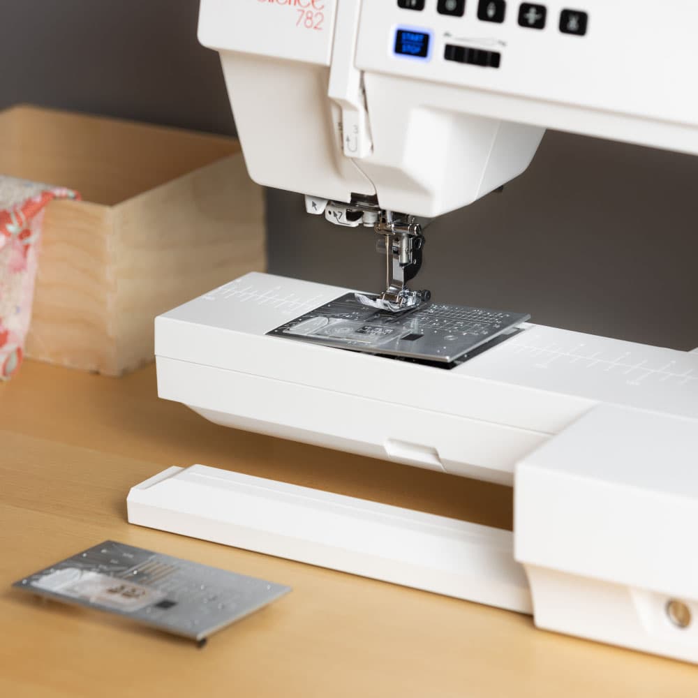 Bobbin changes are effortless with the quick-set drop-in bobbin. Drop your bobbin in the machine, pull your threads through the slot, and let your 782 do the rest.