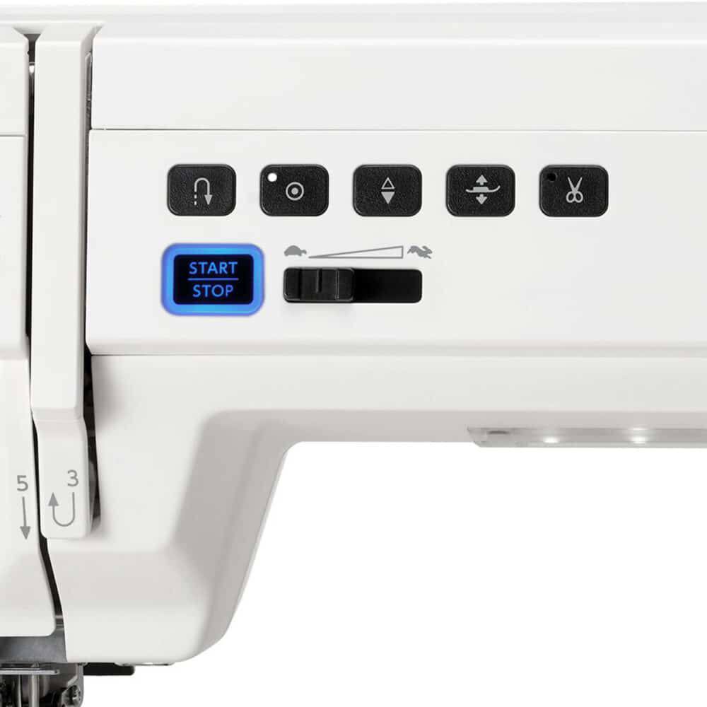 At your fingertips are a variety of convenient buttons, including start/stop, reverse, auto-lock, needle up/down, presser foot lifter, and thread cutter. Set the built-in speed control slider to low, medium, or high for precise sewing at comfortable speeds. Switch tasks smoothly and effortlessly right at your fingertips.