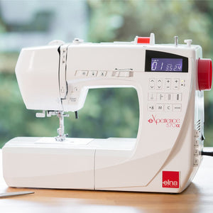 Whether you are just starting your sewing journey or are a pro, Elna's eXperience 570a is the ideal machine. This computerized machine comes packed with all the basic features you need, like 380 stitches, drop feed, free arm, needle threader, LED lighting, and more. The advanced features that make the 570a stand out are the automatic lock stitch and thread cuter, 15 variable needle positions, an extension table, and memory function. It's small enough to take with you to classes and guild meetings while still being able to sew almost anything you ask of it. The 7-piece feed dog system grants excellent fabric capability and can smoothly sew multiple fabric types. Because the Elna eXperience 570a is so very intuitive, it will simplify your sewing tasks, saving you time and trouble; budget-friendly but complete, the 570a offers a broad range of functions for versatile use.