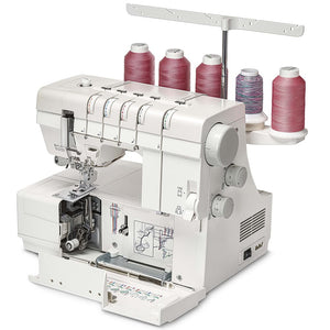 Easily thread your upper needles in moments with its easy-to-see color-coded thread guide. Best of all, the lower loopers are even easier to thread! Pull the thread through, push the looper closed, and you're ready to get started. Also included is a needle threader if you have any struggles.