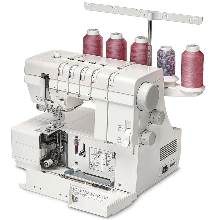 The built-in stitch guide/spreader swings easily into place, providing you with a triple or double Top Cover Stitch that will bring your finishes to a professional level.