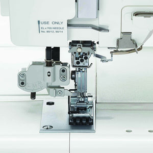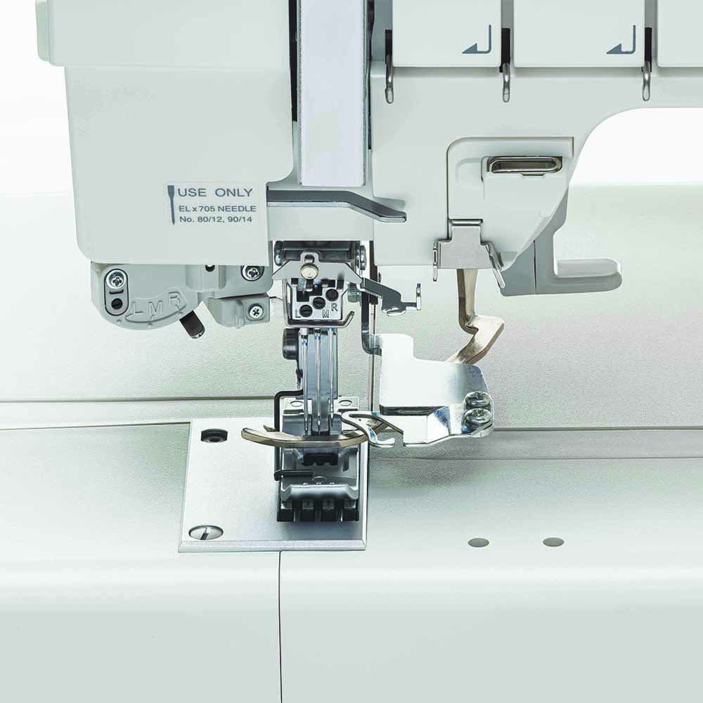 The new Fine Mode Switching Mechanism has enhanced the Tension Level Control (TLC). Switching from heavy to sheer knits and fabrics only takes the flip of a switch, changing the timing and the stroke range of the take-up lever, which softens the needle thread tension. Say goodbye to puckering on sheer fabrics! (Not available for top cover stitch.)