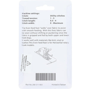 If you've ever struggled to feed your fabric through a sewing machine, you need a Walking Foot. Also known as a "Dual Feed Foot" and "Even Feed Foot", the Walking Foot is an essential tool for any sewer. This foot has built-in feed dogs that grip your fabric for better control. Sewing multiple layers of fabric professionally and with ease.