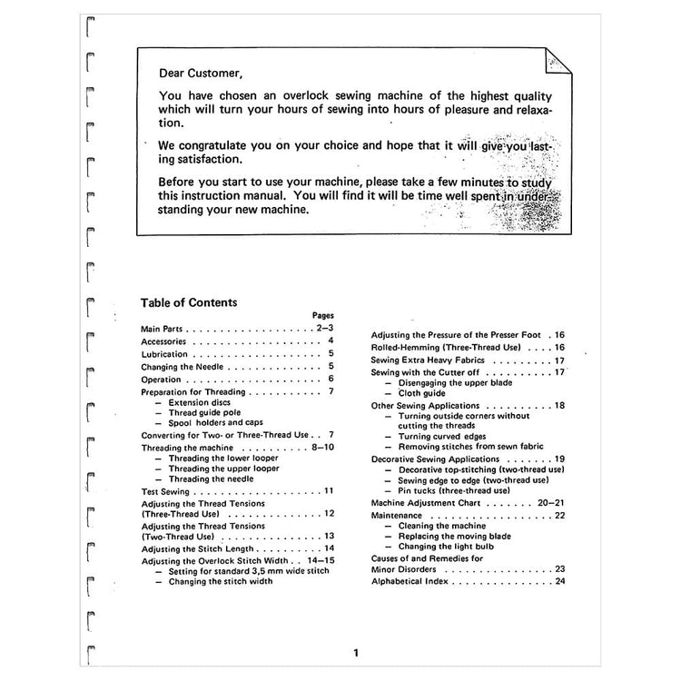 Elna L1 Serger Machine Instruction Manual (Model L1) - 25 Pages. Lost your serger machine's manual? We've got you covered! This instruction manual is the ultimate guide to unlock the full potential of your Elna L1 Serger. No more confusion or frustration—just clear, concise instructions right at your fingertips. What's inside? Everything you need to know from setting up to mastering your serger machine and all its features.