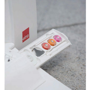 The bobbin spool pin easily pops up and back in, creating a painless process when changing thread spools of any size. A spool pin precisely incorporated into the machine adds to the Lotus' unique design and protects it from being damaged or broken during transportation.