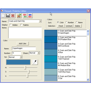 When combined with Essentials, the Embrilliance Enthusiast advanced palette editor allows you to make your own embroidery thread brand charts and pick colors directly from web pages or PDFs with the color grabber tool.