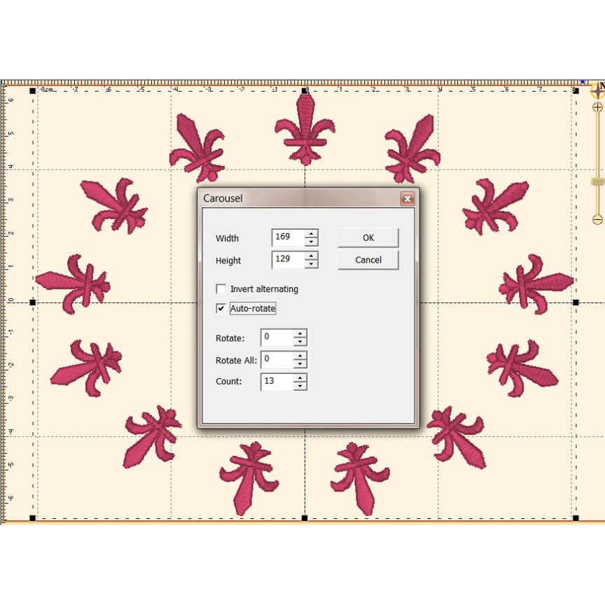 Create circles and ovals from your embroidery designs, with control over the number, rotation, and angle of the repeats.