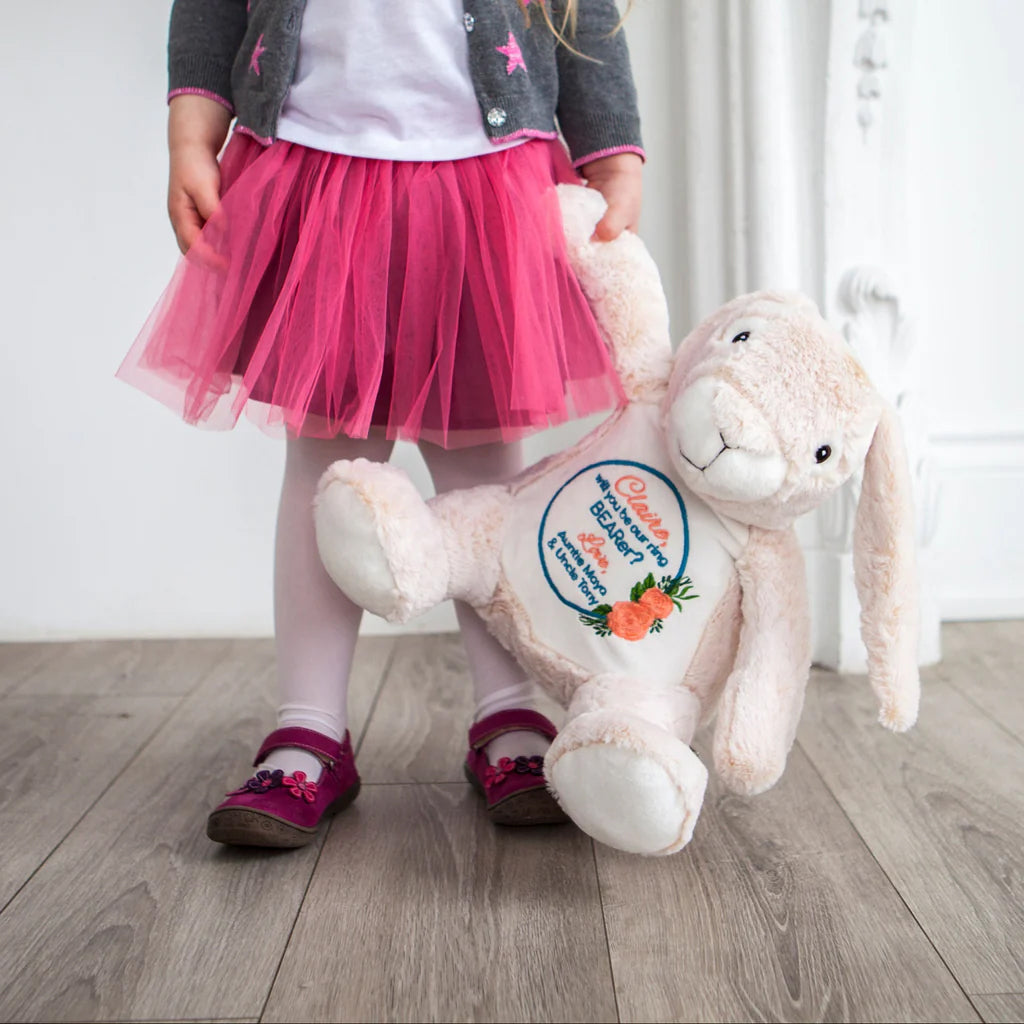 Hop into heartfelt gifting with Bella Bunny Buddy—the irresistibly soft, 16" plush rabbit designed for custom embroidery and cozy cuddles. With her long, floppy ears, gentle expression, and silky-smooth fur, Bella is the perfect companion for Easter baskets, baby showers, springtime birthdays, and personalized newborn keepsakes. Her plush belly is just waiting for a name, date, or sweet message to make her uniquely yours.