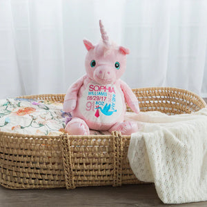 Meet Whimsy Unicorn Buddy—a magical 16" plush companion ready to be personalized with your imagination. With a shimmering silver horn, satin hooves, and a flowing mane in sweet candy floss pink, Whimsy is a whimsical wonder made for dreamers of all ages. Whether you're crafting a baby gift, birthday surprise, or enchanting nursery accent, Whimsy's soft charm and sparkling details make her a truly unforgettable keepsake.