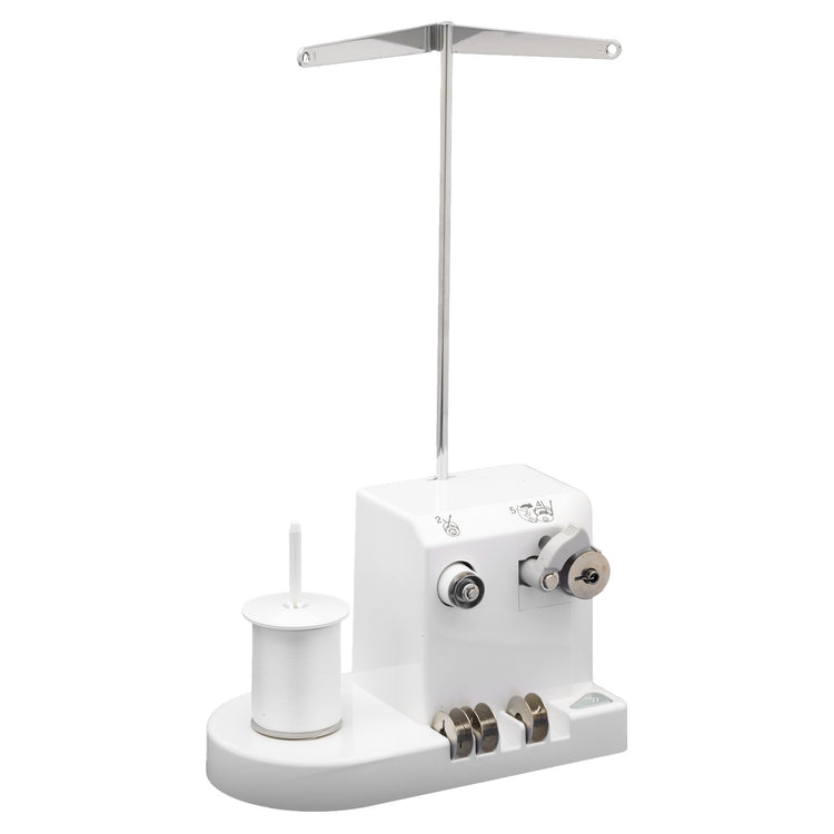 Brother's Embroidery Bobbin Winder is a stand-alone bobbin winder that is designed to load genuine Brother metal bobbins. Includes five empty metal bobbins. Please note, the thread pictured is not included.