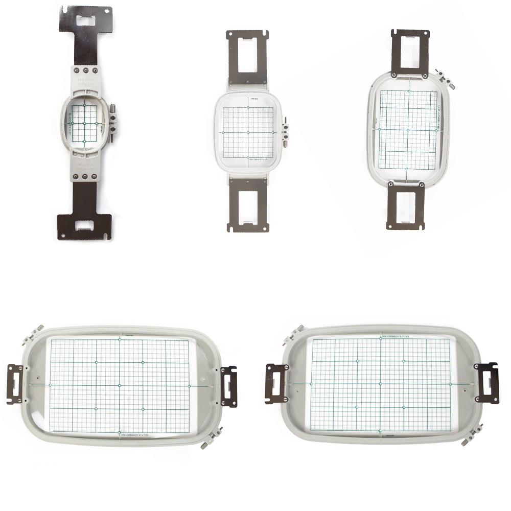 This Premium Embroidery Hoop Set includes one 2.4"x1.6" hoop, one 4"x4" hoop, one 7"x5" hoop, one 8"x12" hoop and one 8"x12" hoop.