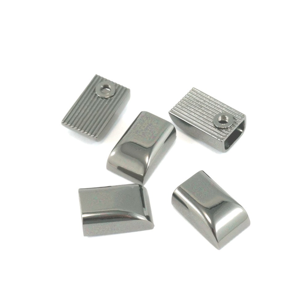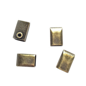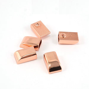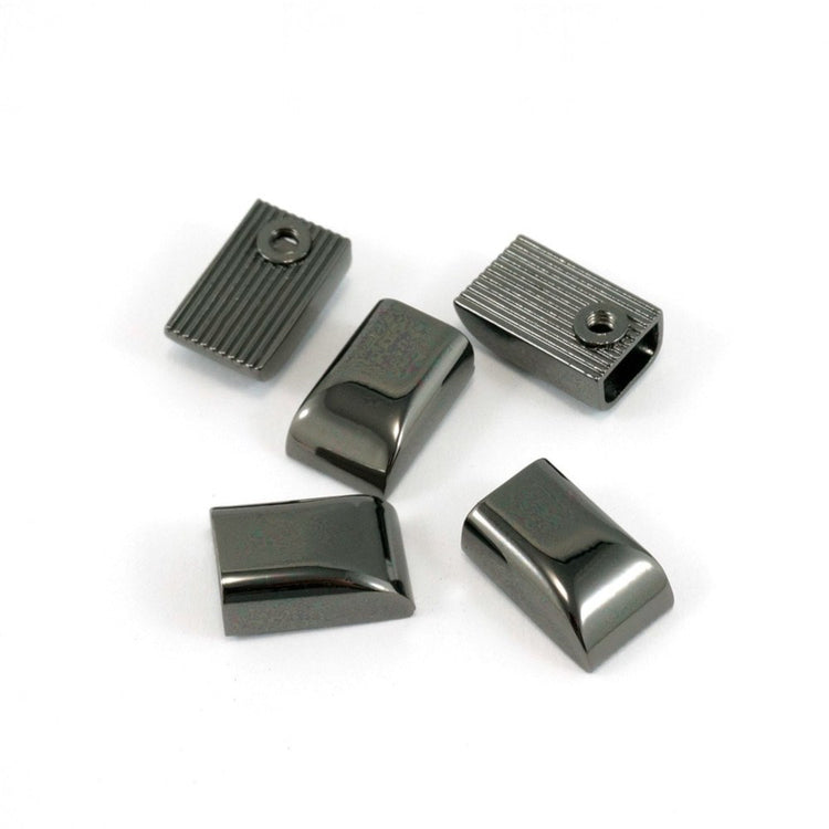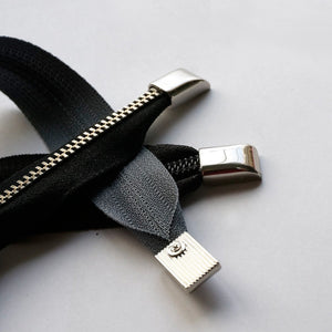 Dress up the tips of cords and zippers with these Zipper and Cord Ends from Emmaline Bags. With these Zipper Stoppers / Cord Ends you no longer have to sew the zipper tabs, you can slide these on and, voila you are ready to go. Now you can repurpose zippers that are too long or take advantage of a continuous zipper roll! They come five to a pack and are available in six colors: antique brass, copper, gold, gunmetal gray, iridescent, and nickel.