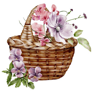 English Garden Floral Basket Fabric Panel