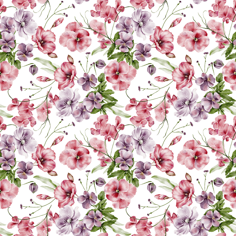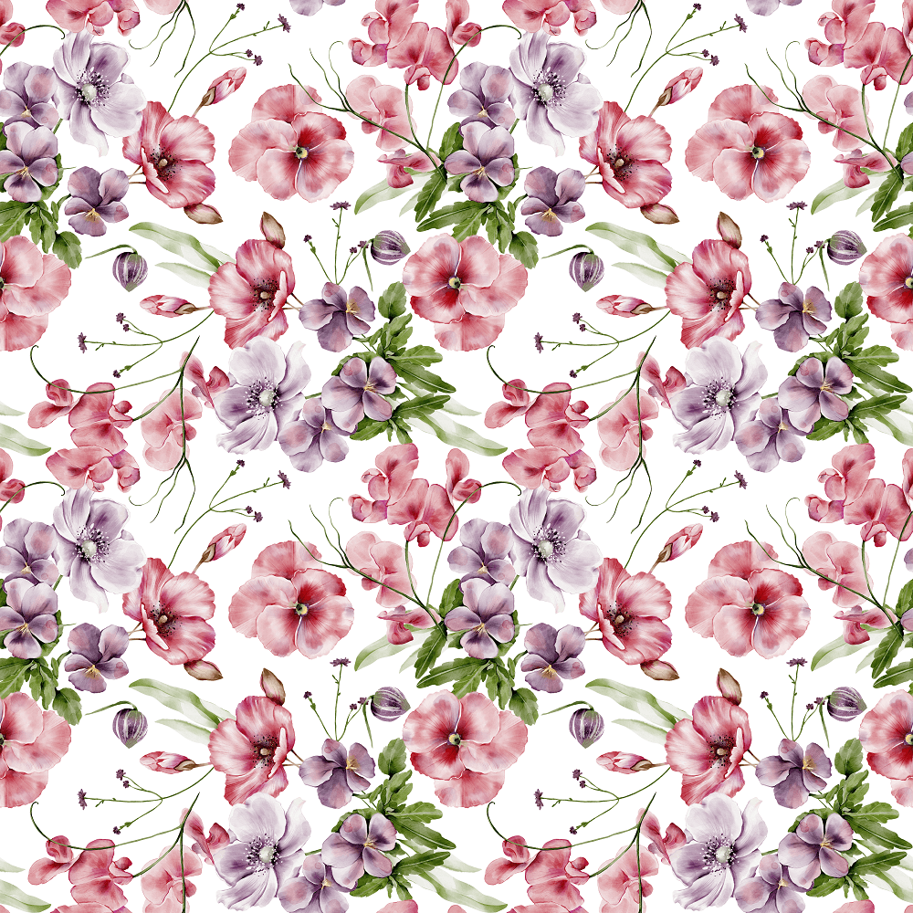 The White English Garden Pansies, Cosmos, and Poppies Fabric is part of the English Garden Fabric Collection printed by Sew Creative Fabrics. Digitally Printed on 100% cotton.