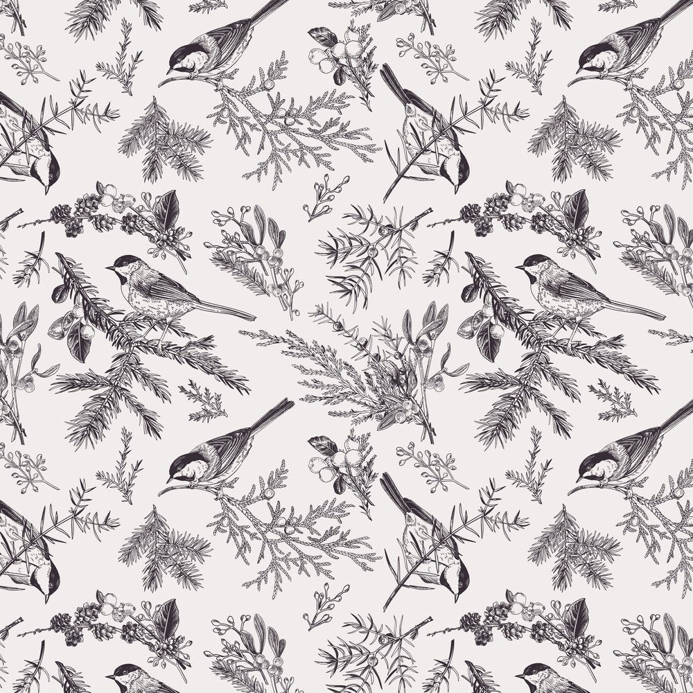 The Engraved Winter Plants & Birds Fabric is a part of the Winter Wonderland Fabric Collection printed by Sew Creative Fabrics. Digitally Printed on 100% cotton and measures 42-43" wide.