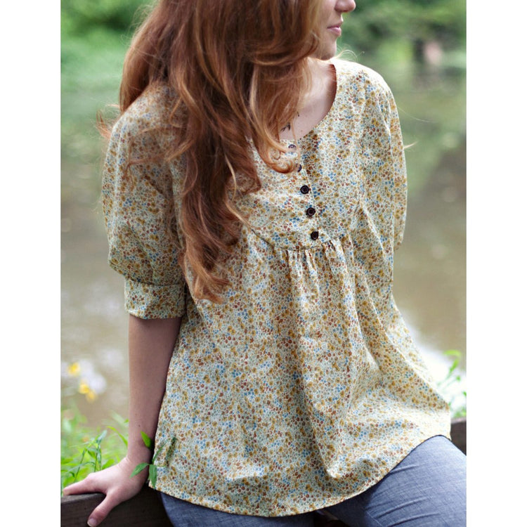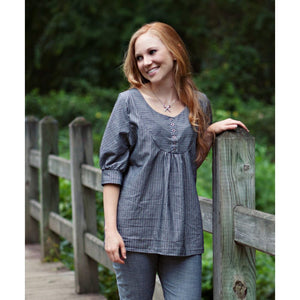 If you loved the Schoolhouse Tunic Pattern, then you will also fall in love with the Esme Top Pattern. This top, designed by Sew Liberated, is a wardrobe staple you will wear over and over again! Make the Esme Top for all seasons using a cotton lawn fabric for a flowy summer top and a cozy cotton flannel for a winter shirt. This simple-fitting top is perfect for advanced beginners. The Esme Top Pattern has detailed instructions and a suggested list of materials.