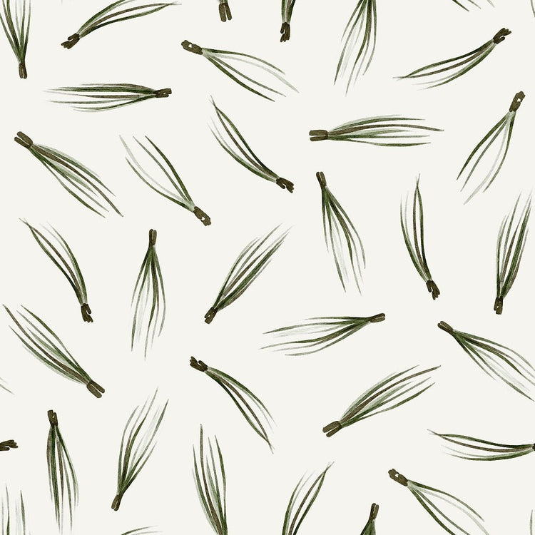 The White Evergreen Forest Pine Needles Fabric is part of the Evergreen Forest Fabric Collection printed by Sew Creative Fabrics. Digitally Printed on 100% cotton.