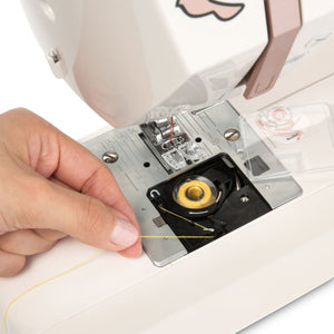 A top-loading bobbin case is by far the most user-friendly of bobbin case designs. Simply drop the loaded bobbin into the case, run the thread through the designated groove, and you are ready to start sewing. The clear cover plate provides visibility to see when your bobbin is running low on thread.