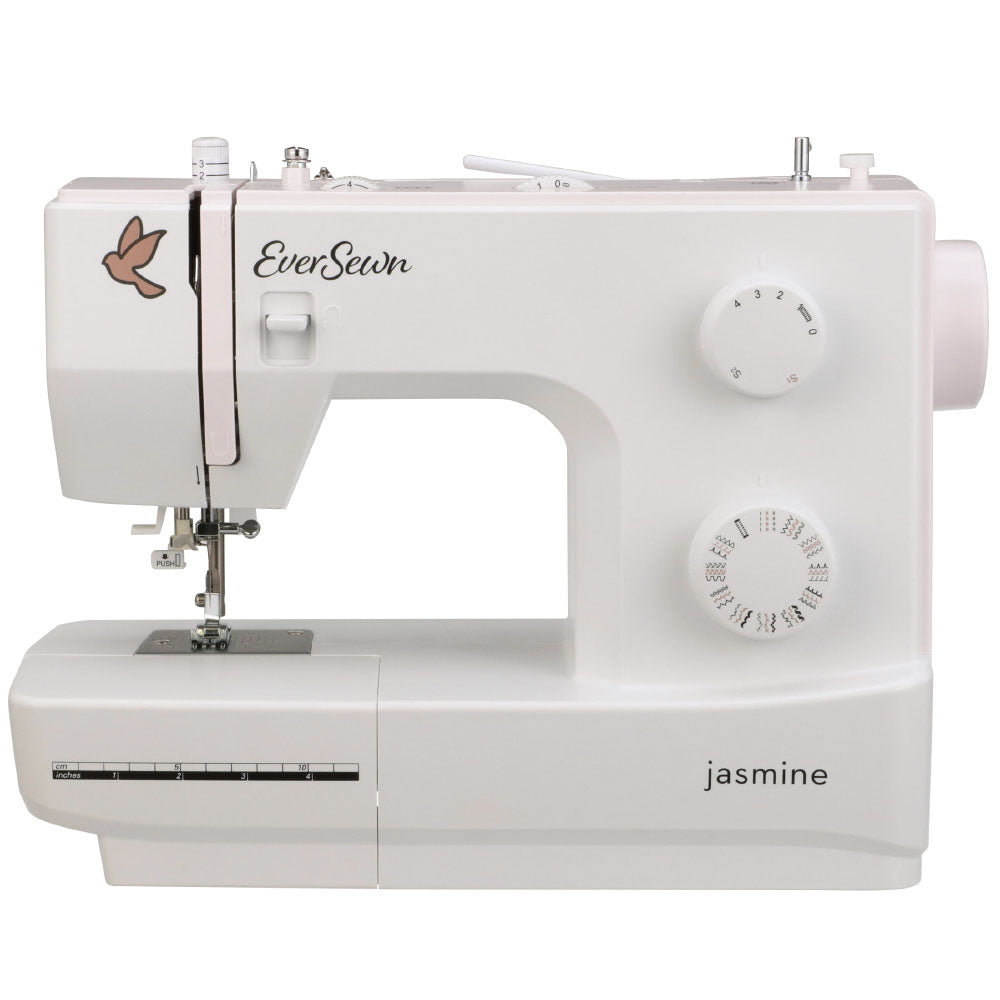 The EverSewn Jasmine Mechanical Sewing Machine is the perfect introductory machine equipped with essential functions to meet everyday sewing needs. Featuring 32 built-in stitches (including a buttonhole), a built-in needle threader, thread cutter, front-loading bobbin, free arm capability, onboard accessory storage, adjustable foot pressure, bobbin winder, and a solid metal frame, the EverSewn Jasmine has everything a beginner could want! The adjustment dials make this machine easy to operate, allowing you to spend more time creating stunning projects. At only 13.5 pounds, you can even take the EverSewn Jasmine Mechanical Sewing Machine with you to alterations and classes!
