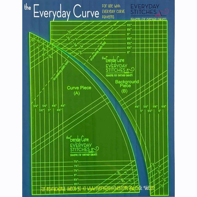 The Everyday Curve Template correlates with specified Everyday Curve Patterns. The Everyday Curve Patterns are made with a gently curved element that, when paired with this template, is painless to cut and piece. Made from acrylic, these templates allow you to easily cut multiple fabric layers at once. The measurements on the template are precise, ensuring accuracy, so your patterns line up perfectly.