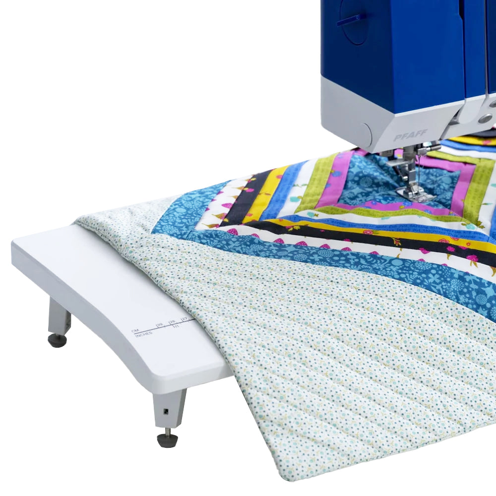 This Pfaff Extension Table is designed to provide extra stability and support for large sewing projects. Featuring adjustable legs for customizable height and balance, this sturdy extension table seamlessly converts your machine’s free arm into a spacious flatbed, making it easier to handle quilts, garments, and other expansive projects. The smooth surface reduces fabric drag, allowing for effortless movement and precise stitching. Whether you're quilting, piecing, or sewing heavy fabrics, this extension table enhances your workspace for improved comfort and control. Upgrade your sewing experience with the Pfaff Extension Table!
