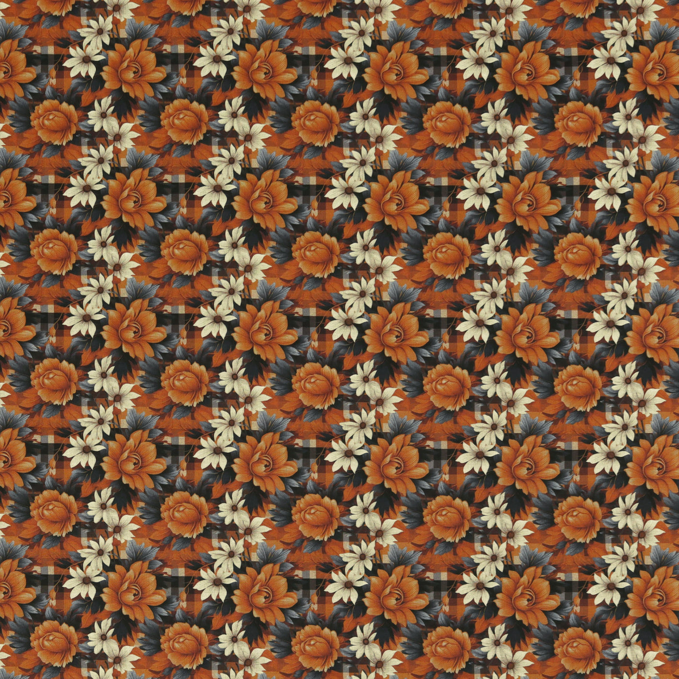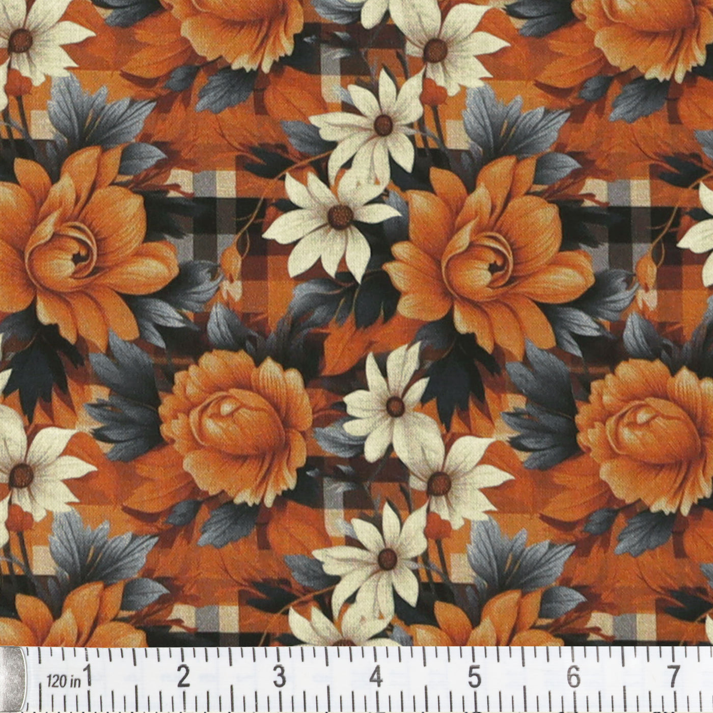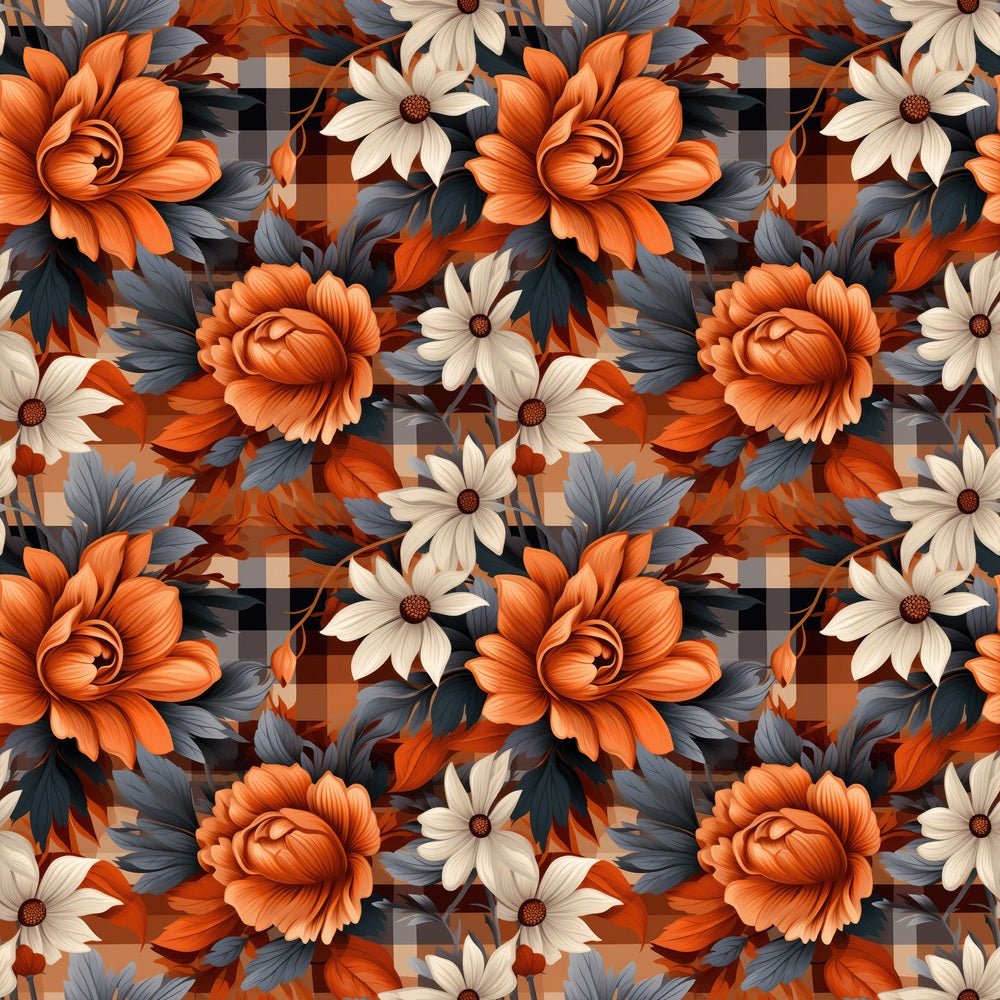 Fall Flowers on Plaid Fabric