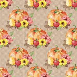 Fall Pumpkins & Florals Dotted Fabric - Brown