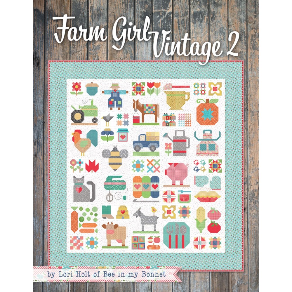 Lori Holt is back with another Farm Girl Vintage quilt sampler. Farm Girl Vintage 2 includes a whole new set of blocks (total of 45) in the same two sizes (6in and 12in). In addition to the quilt sampler, Farm Girl Vintage 2 offers 13 smaller projects including pillows, pincushions, and quilts. Just like in the original Farm Girl Vintage Book, you can mix and match blocks to create your own unique quilts and projects.
