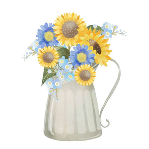The Farmhouse Sunflowers Arrangement 2 Fabric Panel is part of the Farmhouse Sunflowers Fabric Collection printed by Sew Creative Fabrics. Digitally Printed on 100% cotton. This fabric panel is available in 6 different sizes: