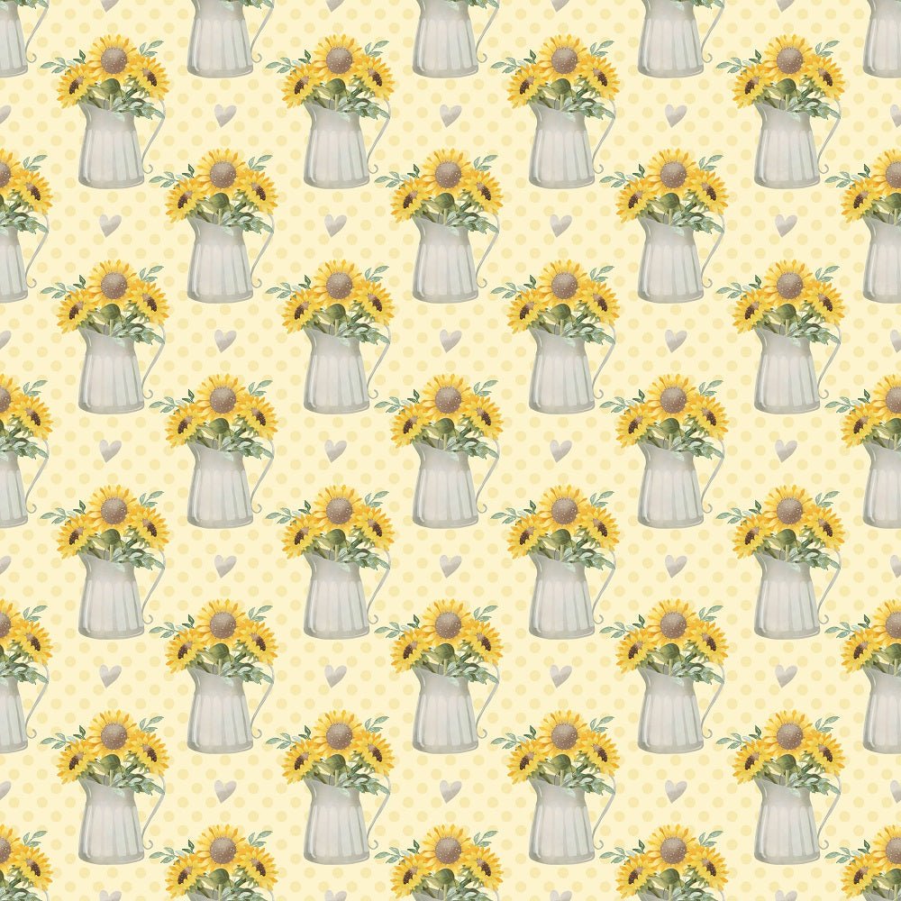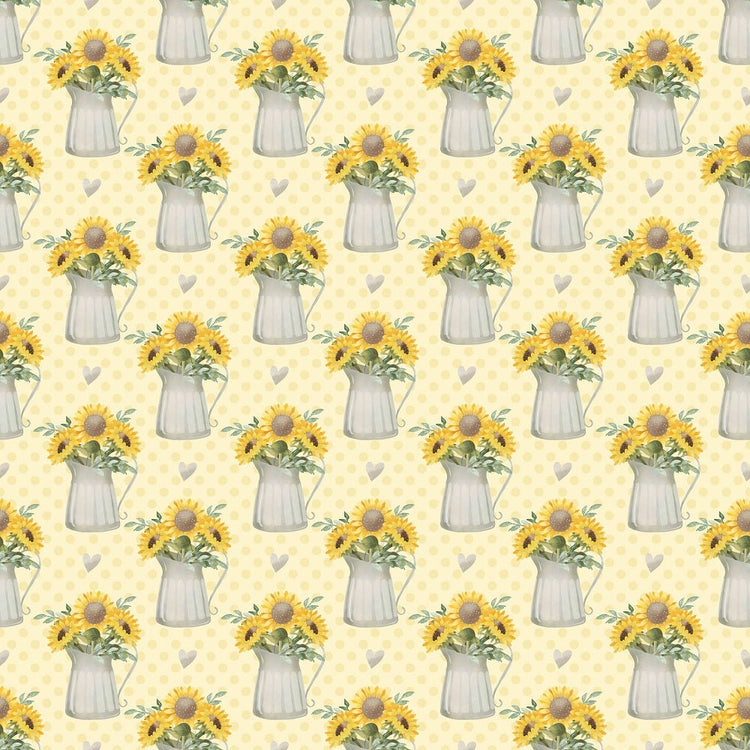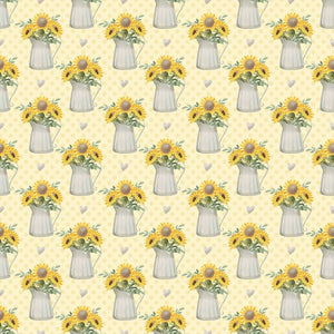 The Yellow Farmhouse Sunflowers in Watering Can Fabric is part of the Farmhouse Sunflowers Fabric Collection printed by Sew Creative Fabrics. Digitally Printed on 100% cotton.