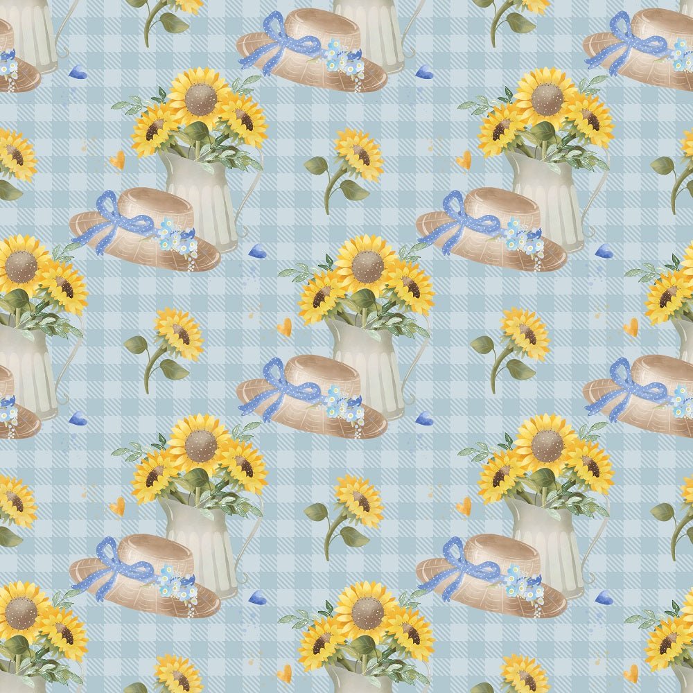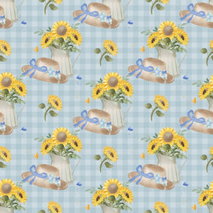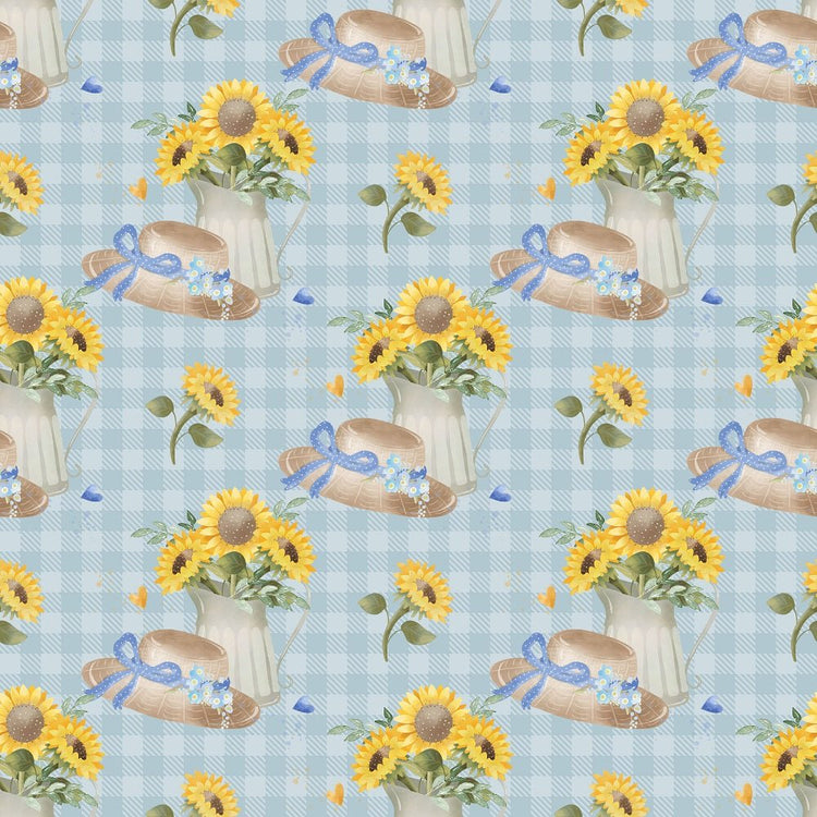 The Blue Farmhouse Sunflowers on Plaid Fabric is part of the Farmhouse Sunflowers Fabric Collection printed by Sew Creative Fabrics. Digitally Printed on 100% cotton.