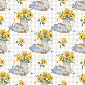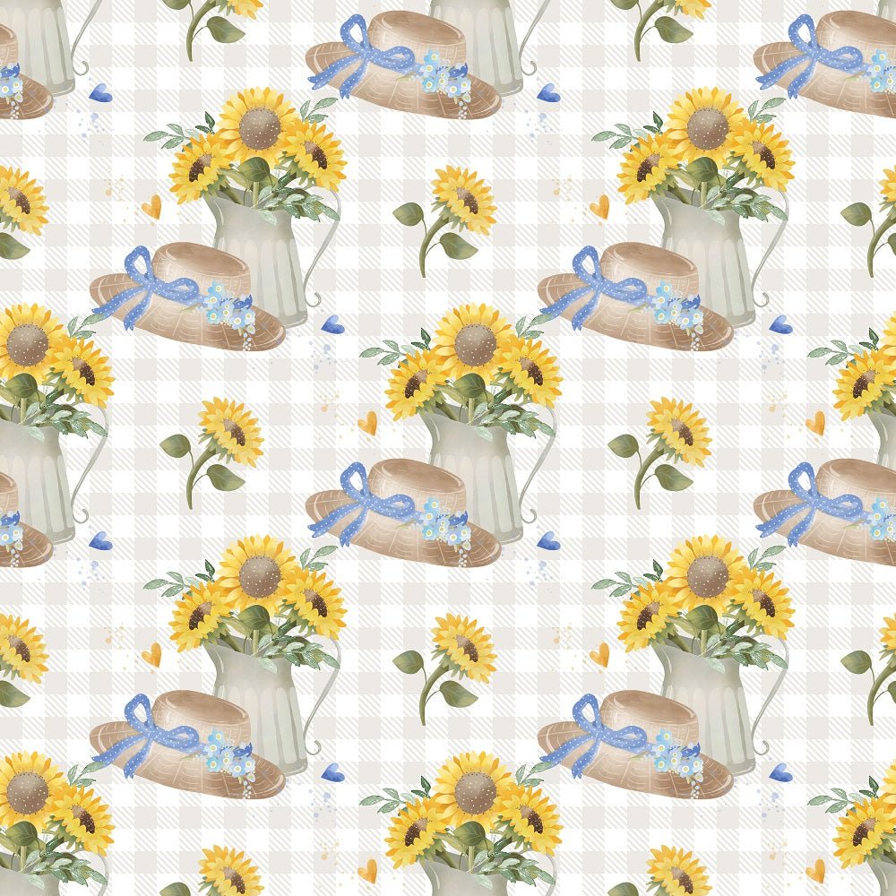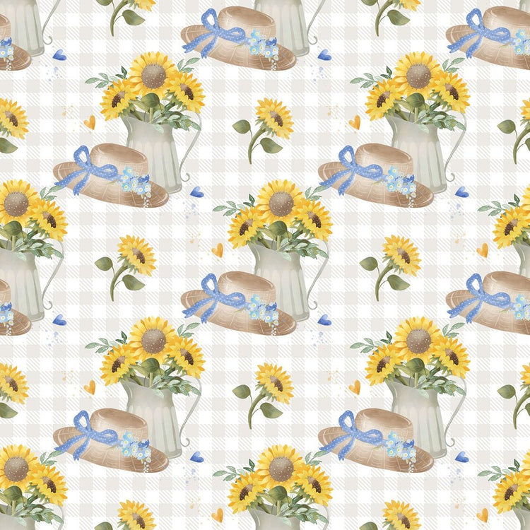 The White Farmhouse Sunflowers on Plaid Fabric is part of the Farmhouse Sunflowers Fabric Collection printed by Sew Creative Fabrics. Digitally Printed on 100% cotton.