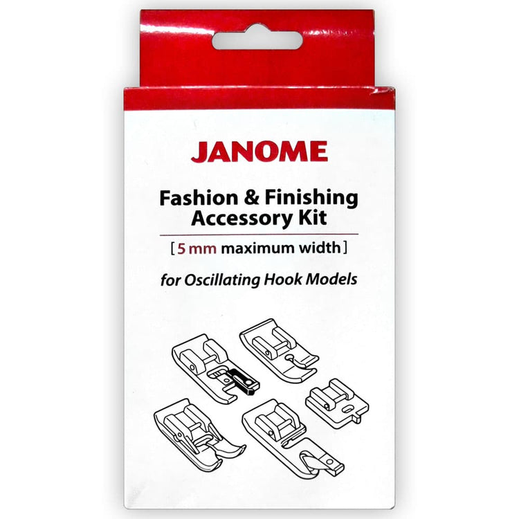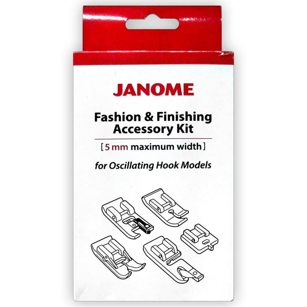 Janome's Fashion & Finishing Kit includes five must-have presser feet essential for tailoring and clothesmaking. To see a detailed description of each foot in the kit, click here.