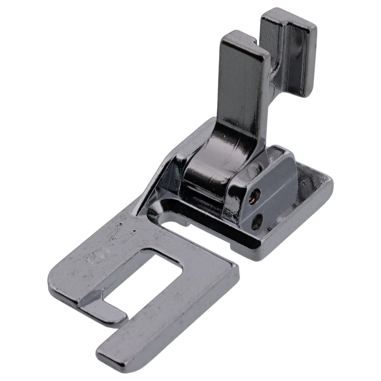 The felling foot is used for sewing professional looking flat-felled seams such as the seams in jeans. It can also be used for turning narrow edges and hems. This foot will save you time and is great for construction of many garments especially enclosed side seams.