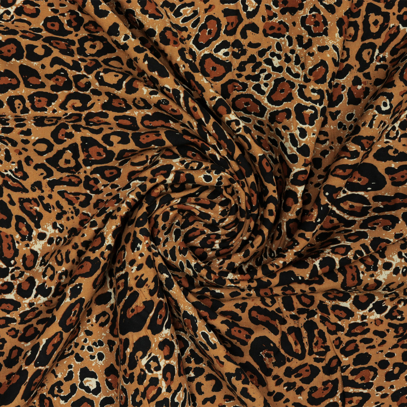 Unleash your wild side with Feral Essence Tan, a bold and untamed rayon print designed by Katarina Roccella for the Boscage collection. Inspired by the lush wilderness of Borneo, this fierce animal print features rich tan and cocoa tones layered with shadowy black spots—reminiscent of jungle cats slinking through the tropics. As part of Boscage, which evokes exotic wildlife and deep forest color palettes, this design brings a sense of adventurous elegance to your wardrobe or handmade creations.